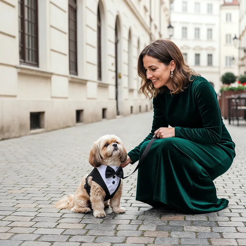 Stechen Sie auf jedem Event hervor, indem Sie Ihr Haustier schick kleiden. Die Fliegendetails sorgen für Charme bei Partys und Fotos.