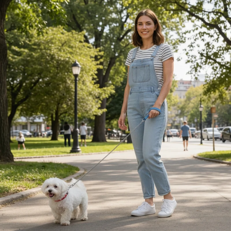 Bewegen Sie sich frei, ohne Knoten oder verdrehte Leinen. Der clevere Haken dreht sich, sodass Ihre Haustiere sicher an Ihrer Seite bleiben.