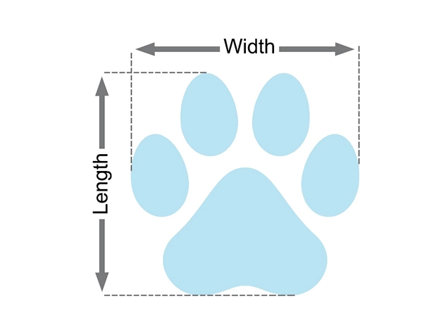 • 2. Markieren Sie den breitesten und längsten Teil der Pfote und messen Sie diese Abstände mit einem Lineal.