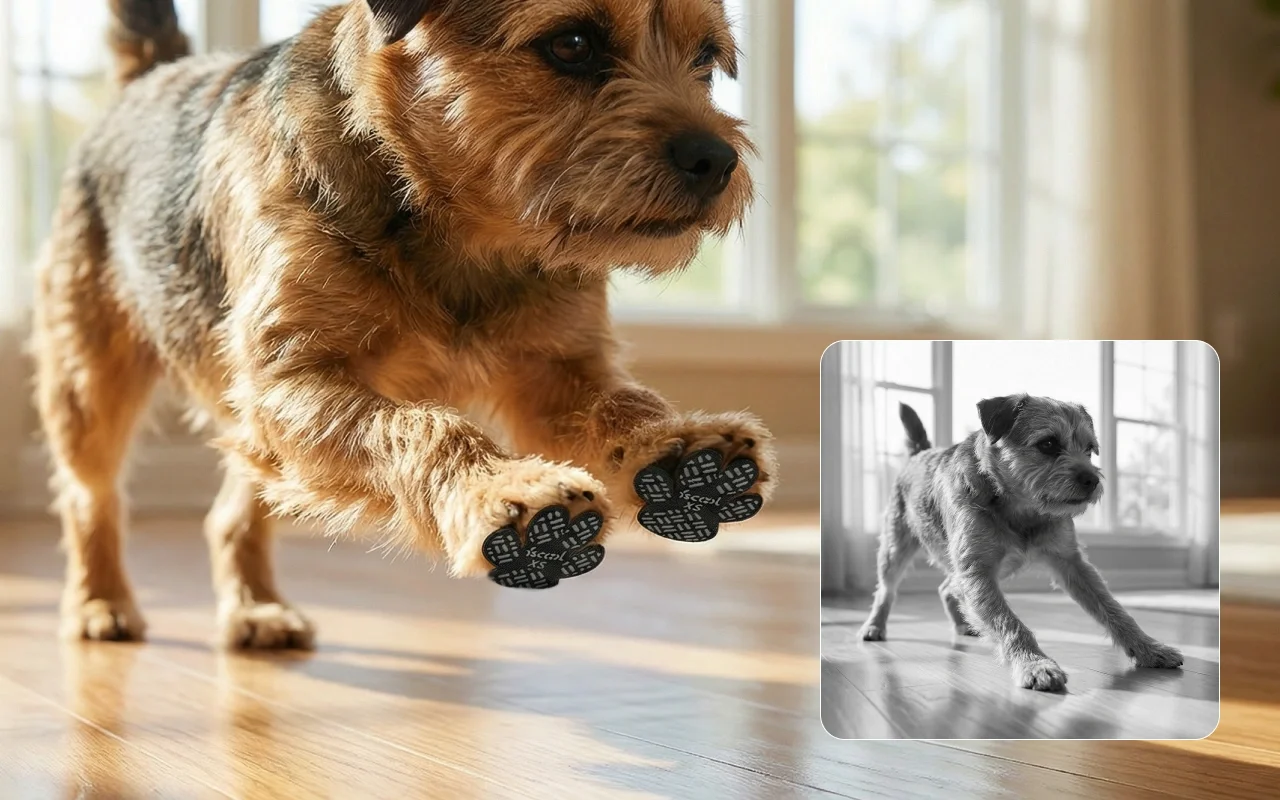 Keine plötzlichen Ausrutscher oder nervösen Bewegungen mehr auf glatten Böden. Primdog lässt Haustiere frei laufen oder rennen und jeden Winkel genießen.