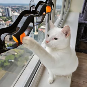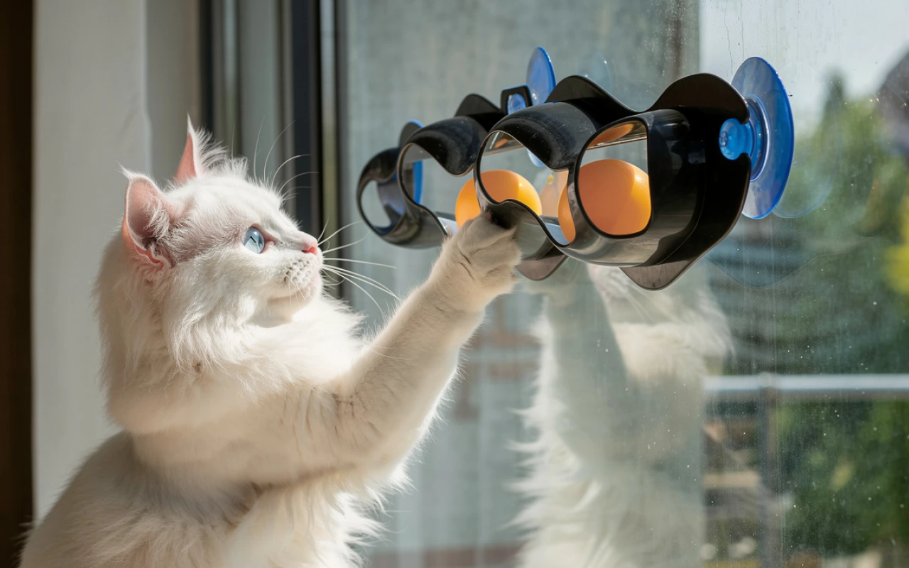 Das Bahn-Spielzeug hält super an Glas. Meine Katzen waren sofort interessiert und spielen fast jeden Tag damit.