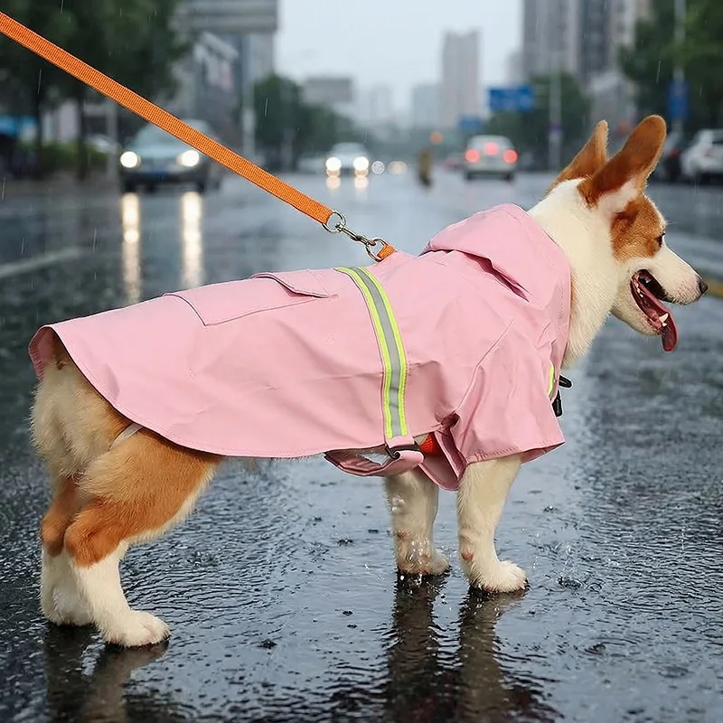 Heller reflektierender Hunde-Regenmantel mit Kapuze
