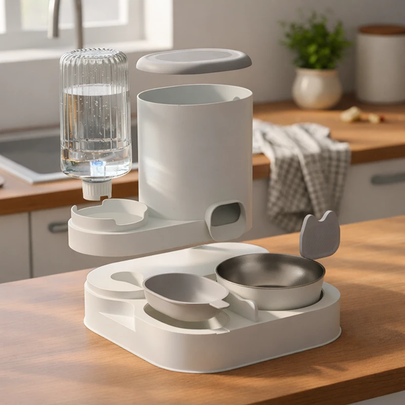 Super für meine faulen Morgen! Ich mache mir keine Sorgen mehr, dass meine Haustiere kein Wasser oder Futter haben. Er ist leicht zu reinigen und sieht schön in der Küche aus.