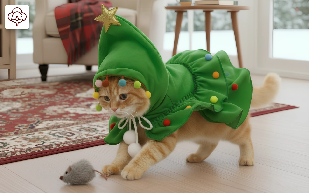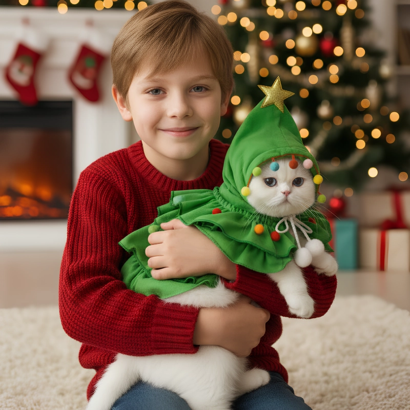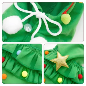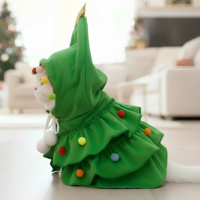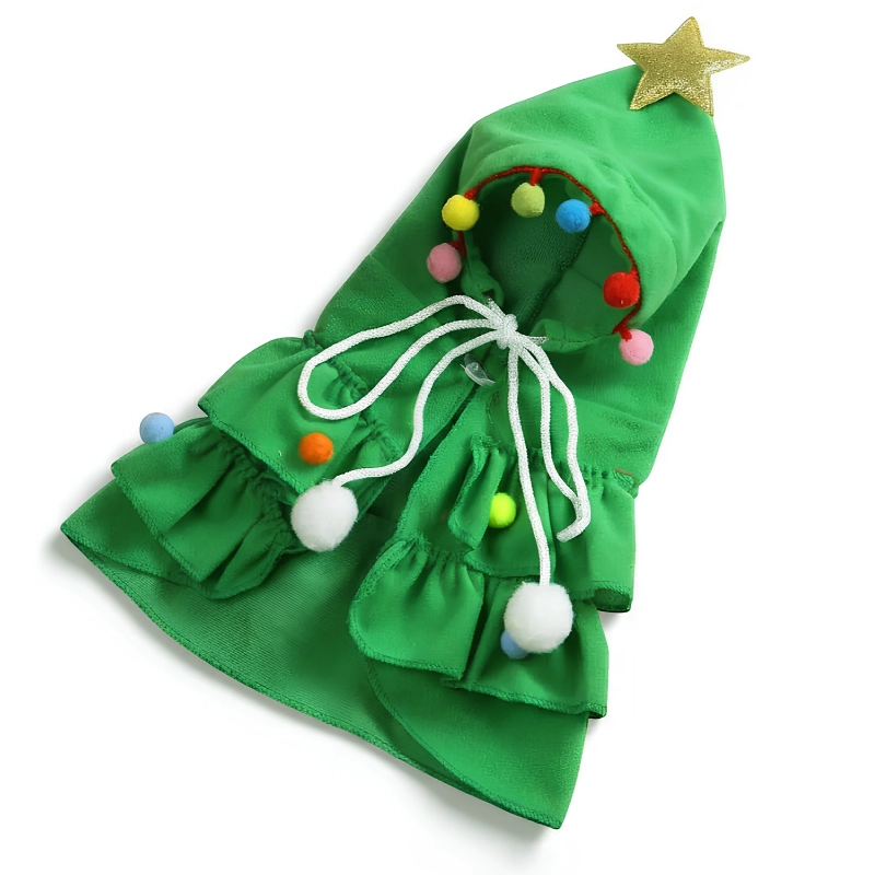 cat christmas tree costume, cat christmas hooded coat, cat christmas hooded cloak,