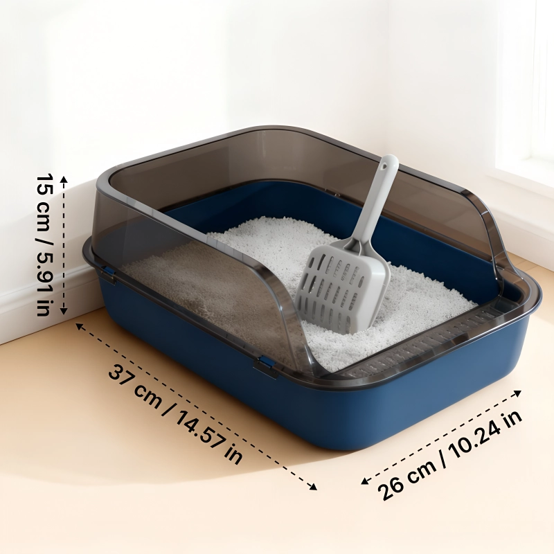 Die hohen Wände bedeuten kein verstreutes Streu mehr. Das offene Design macht es leicht zu sehen, wann eine Reinigung nötig ist.