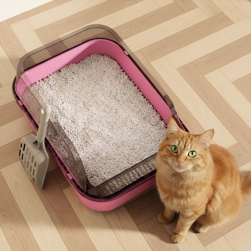 cat enclosed litter box, cat litter box ,cat sandbox, high sided litter box