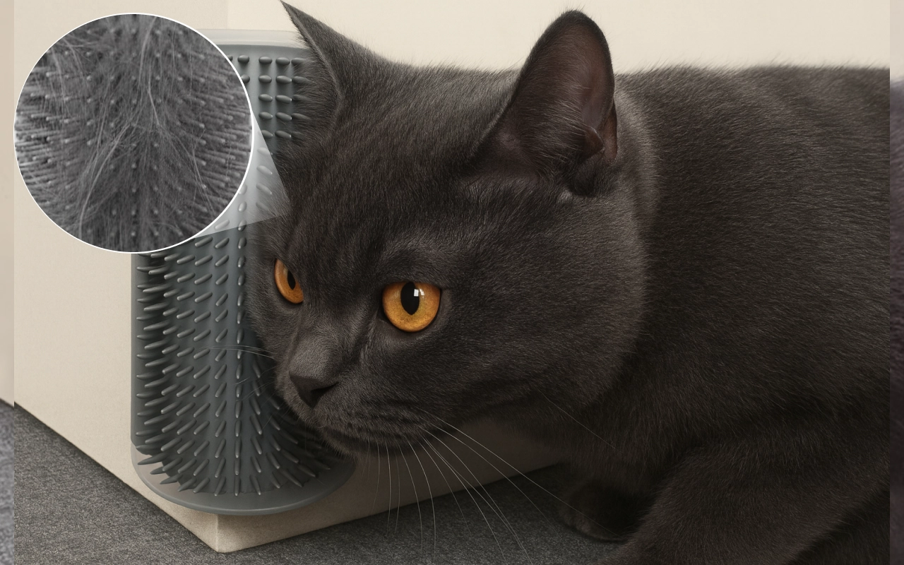 Die Primdog Katzen-Eckbürste entfernt lose Haare, während Ihr Haustier sanfte Streicheleinheiten genießt. Die Borsten helfen, Oberflächen sauber und ordentlich zu halten. Wählen Sie eine Farbe, die zu Ihrem Raum passt, und machen Sie die Fellpflege für alle einfach.