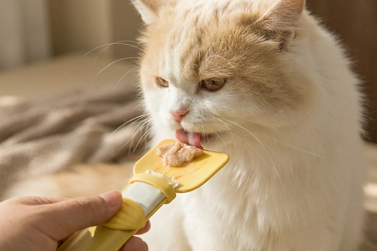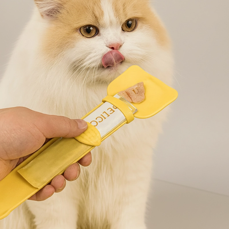 cat strip feeder, squeeze spoon feeder, squeeze feeding spoon