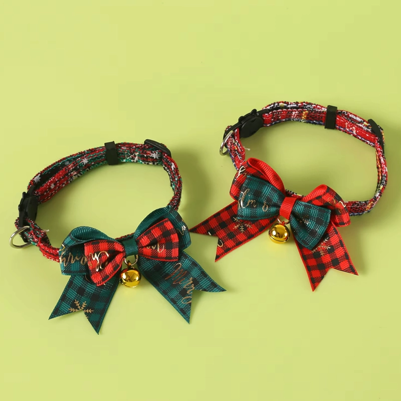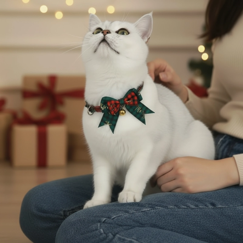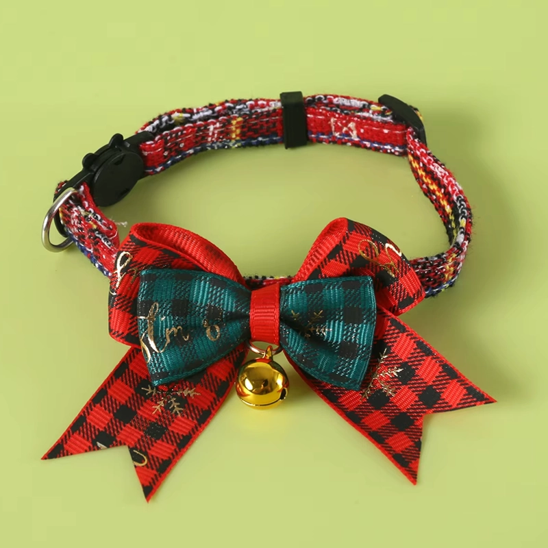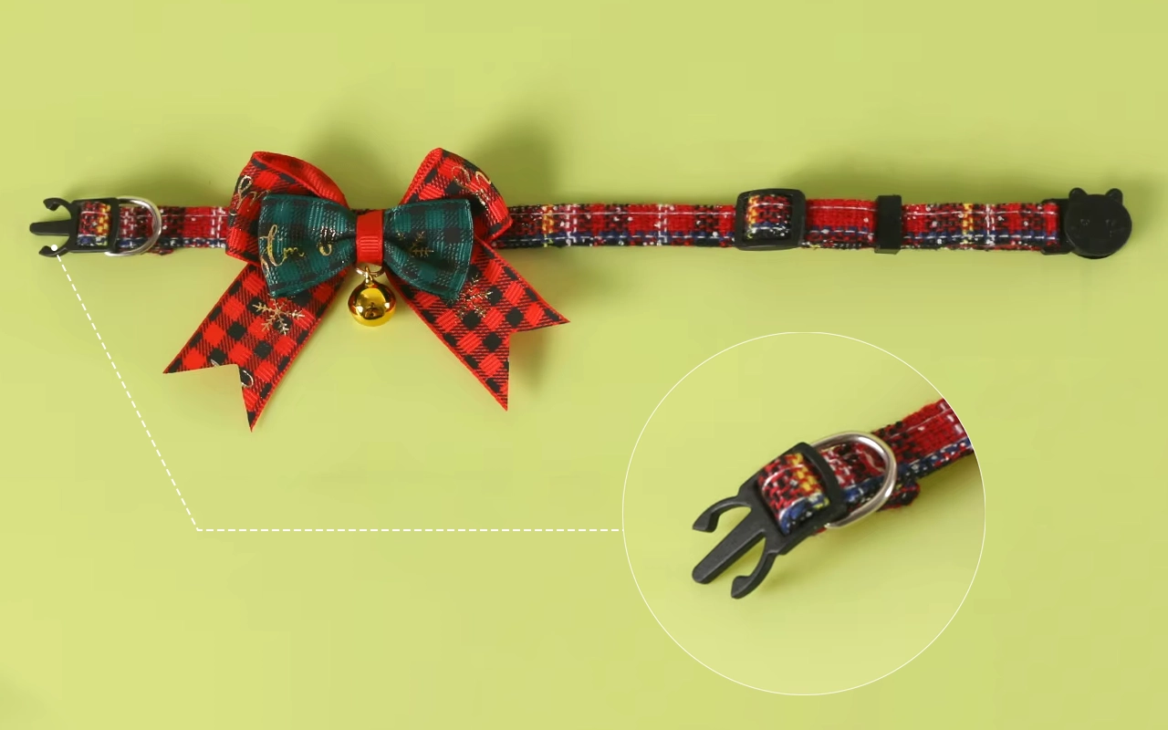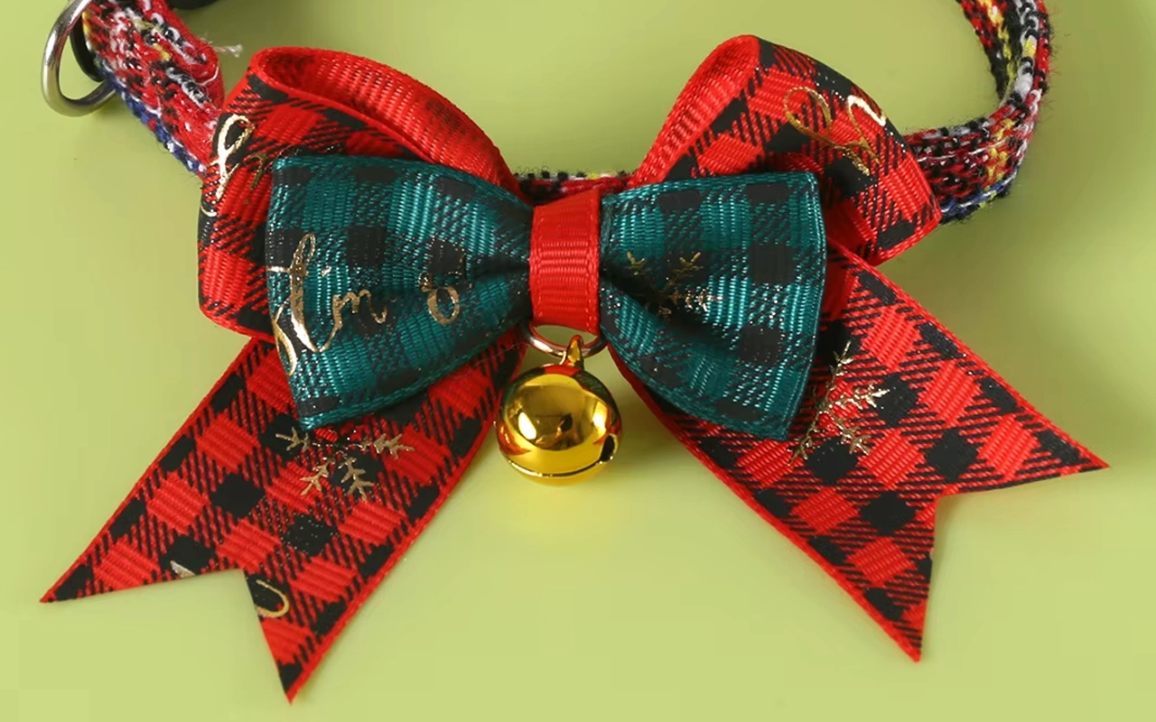Meine Katze sieht dieses Weihnachten mit ihrer neuen Schleife besonders süß aus! Das Karomuster ist super lustig und das goldene Glöckchen klingelt, wenn sie herumläuft.