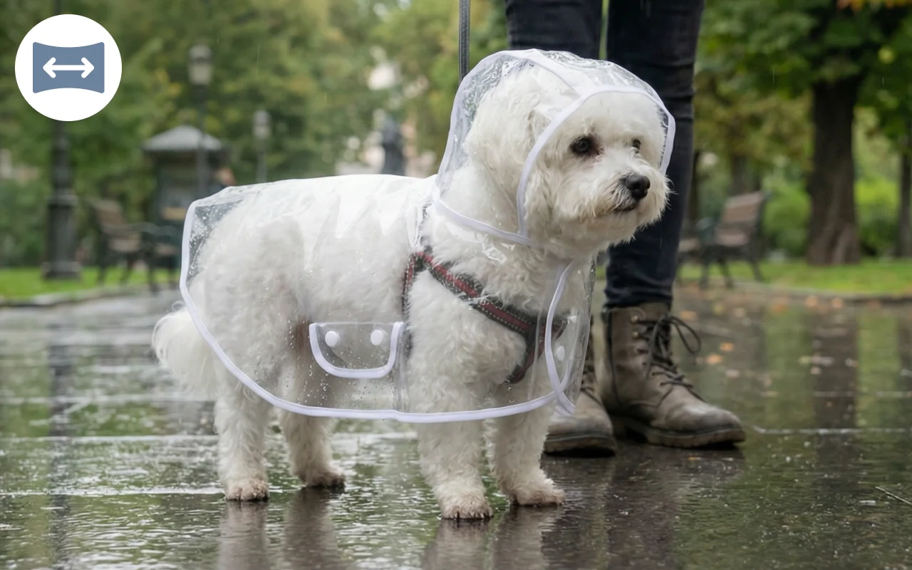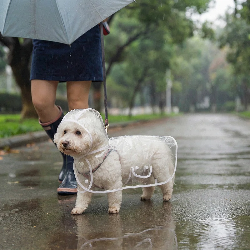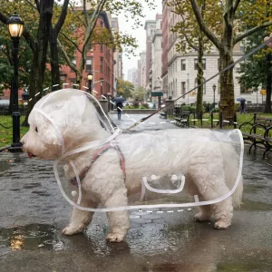 Mein kleiner Hund bleibt jetzt auf all unseren Spaziergängen trocken. Der durchsichtige Mantel sieht süß aus und hält ihn auch bei starkem Regen bequem.