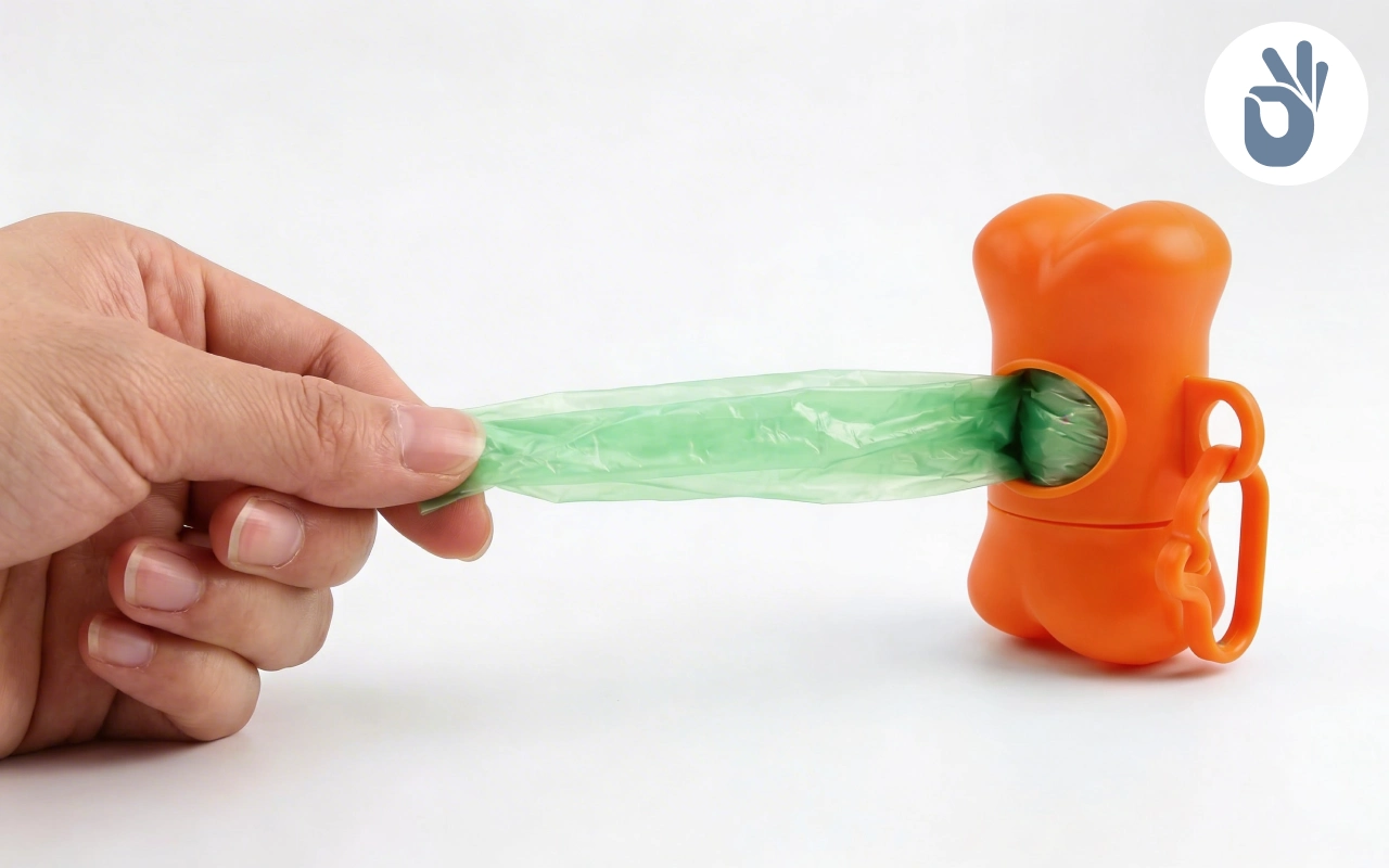 Kein Kramen mehr nach Beuteln während des Spaziergangs. Der Primdog-Kotbeutelhalter gibt jeden Beutel bei Bedarf mühelos aus.