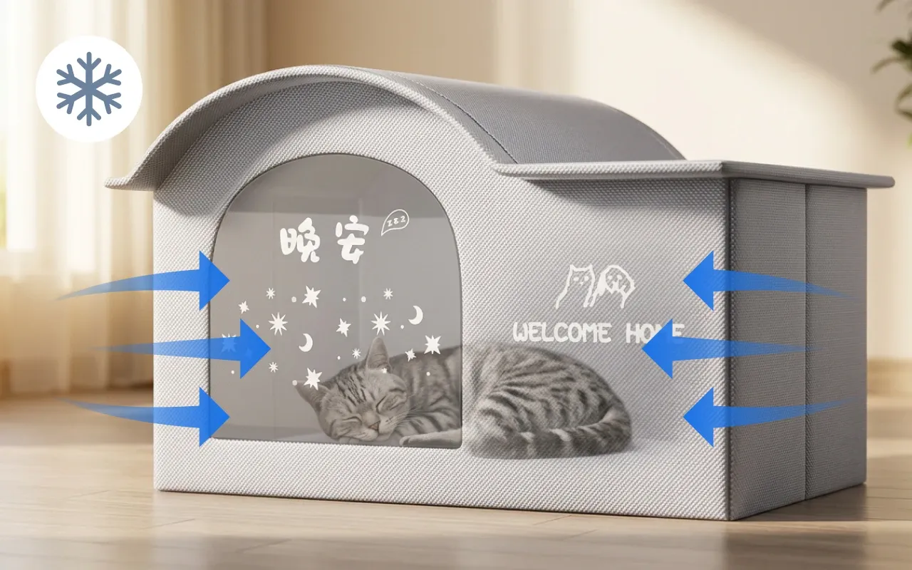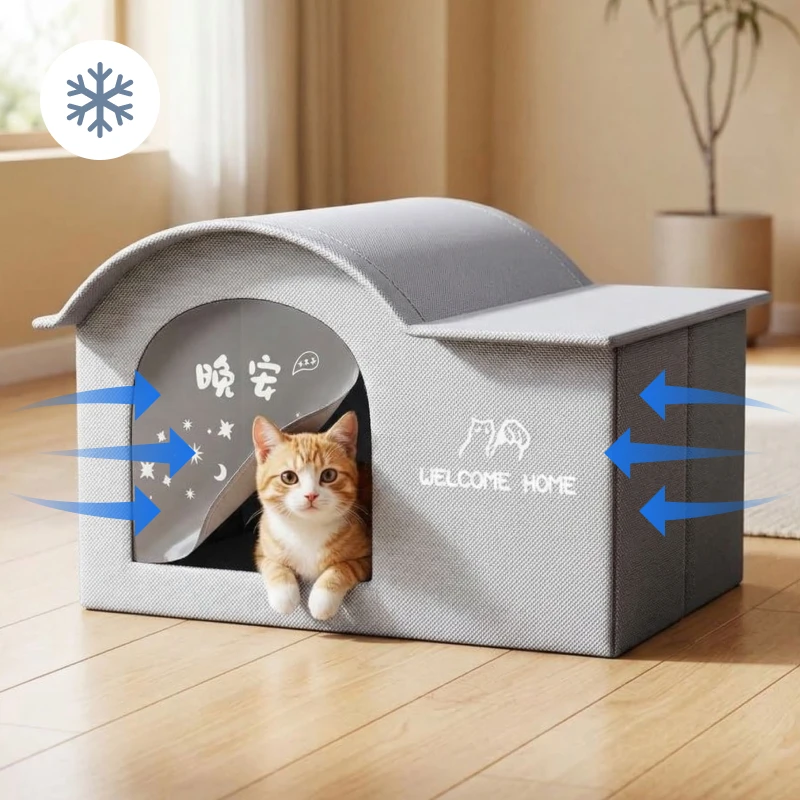 Kühlendes Katzen-Eishaus – Atmungsaktives Haustiernest mit Eispacks