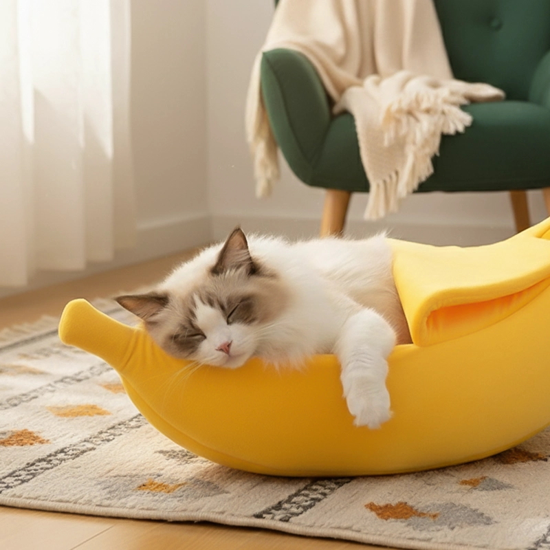 Niedliches Katzen-Bananenbett Gemütliches Tiernest