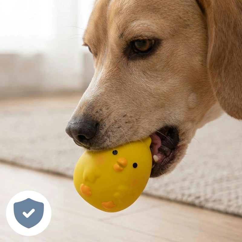 Riesenerfolg bei meinem Hund. Sie kaut und knabbert jeden Tag am Hühnchen. Das Gummi ist überraschend langlebig – sieht nach einem Monat noch aus wie neu.