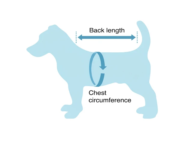 - 1. Messen Sie die Rückenlänge Ihres Haustiers von der Basis des Halses bis zum Schwanz.