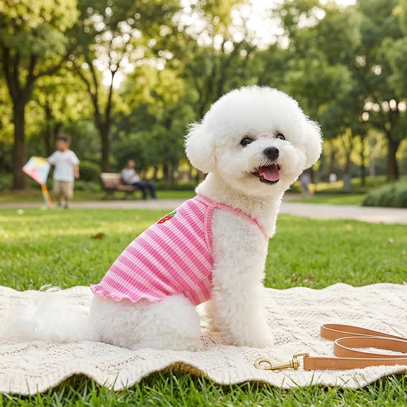 Mein Hund hasst normalerweise Kleidung, aber sie wedelt tatsächlich mit dem Schwanz, wenn ich dieses gestreifte Kleid hervorhole. Kein Scheuern, kein Theater, einfach den ganzen Tag bequeme Niedlichkeit.