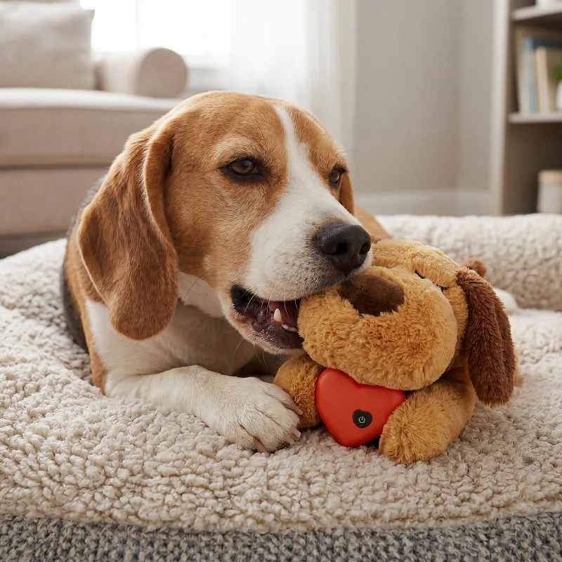 Niedliches Plüsch Hundespielzeug mit Herzschlag