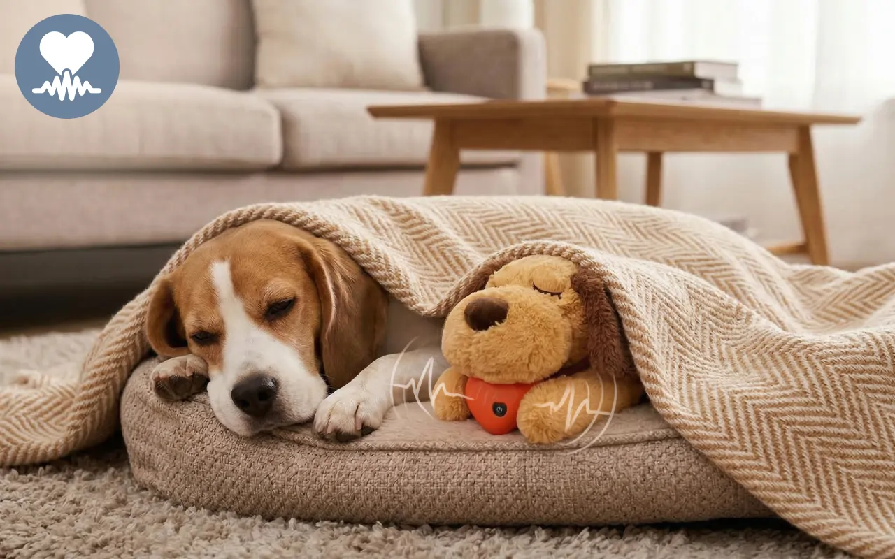 Ein sanftes Herzschlaggeräusch fördert jede Nacht einen tiefen, erholsamen Schlaf. Kein Bellen oder Jaulen mehr wegen plötzlicher Sorgen oder Unbehagen.