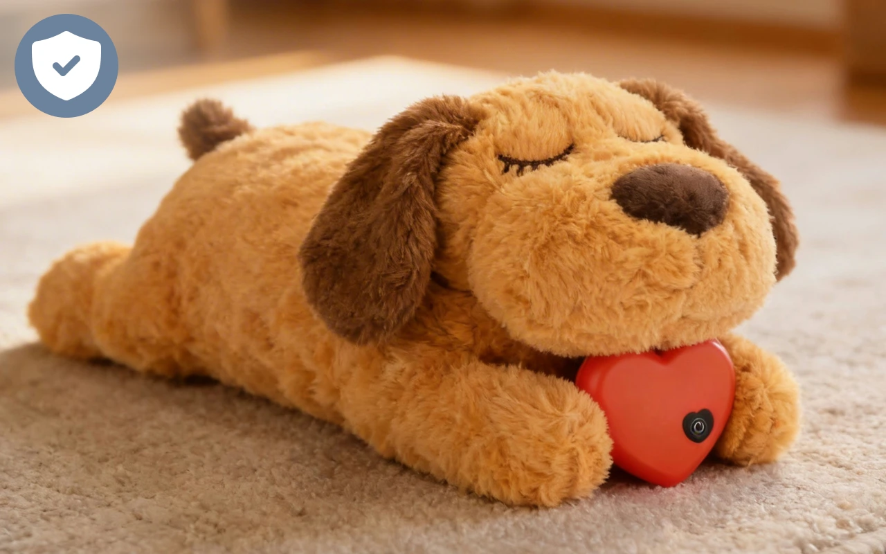 Unser neuer Welpe hat das Kuscheltier zu seinem besten Freund gemacht. Das sanfte Herzschlaggeräusch beruhigt ihn, besonders wenn ein Gewitter aufzieht. Seitdem hatten wir keine schlaflose Nacht mehr.