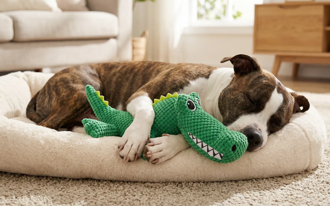 Mein Hund liebt das Krokodil-Spielzeug absolut! Es hält sie stundenlang beschäftigt und sie nimmt es sogar mit ins Bett. Super zum Spielen und Kuscheln.