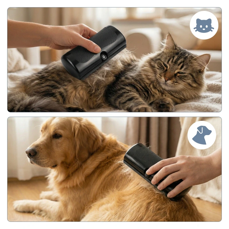 Ich habe zwei Hunde und eine Katze, und dieser Kamm funktioniert bei allen dreien. Ich liebe den Griff, das Bürsten geht schnell und das Fell landet im Müll statt auf mir.