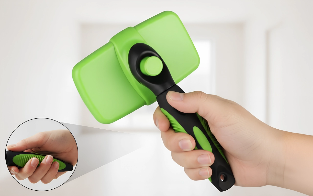 Das Griffdesign liegt angenehm in der Hand, selbst bei langen Bürstsitzungen. Die Hände bleiben entspannt und das Bürsten wird für alle einfach.
