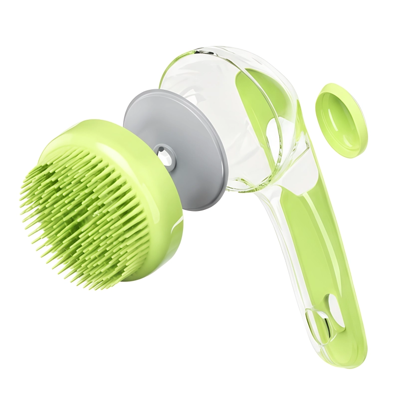 Ich liebe diesen Schrubber wirklich! Er entfernt sanft Schlamm und Fell, und mit dem integrierten Spender wird kein Shampoo mehr verschwendet.