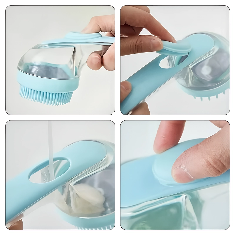 Hund Silikon-Badbürste Shampoo-Spender mit langem Griff
