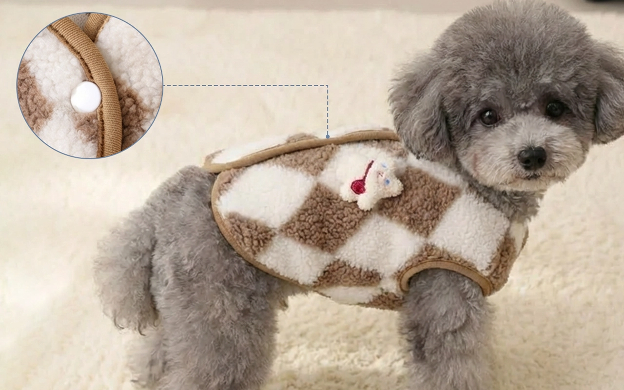 dog soft plaid jacket, dog soft jacket, dog jacket with snap buttons, dog winter vest