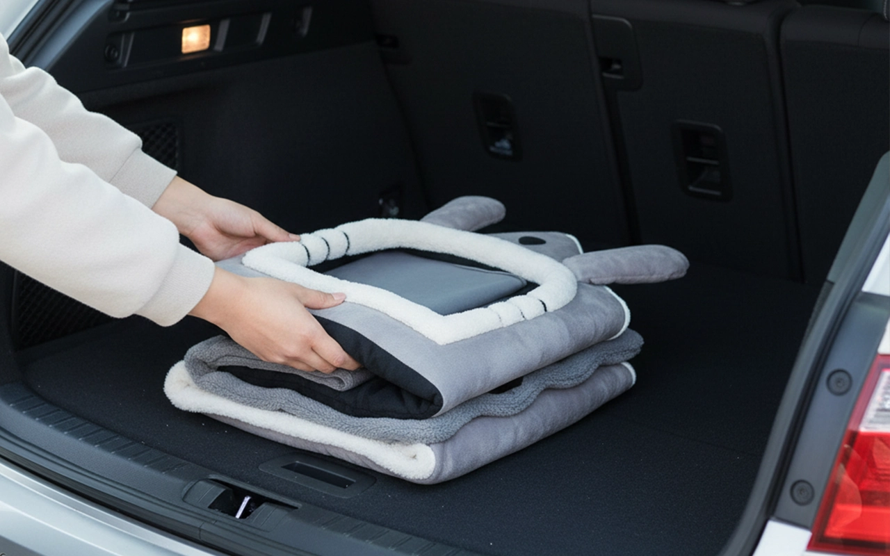 Einfach zusammenzufalten und zu verstauen, sehr weich gepolstert.