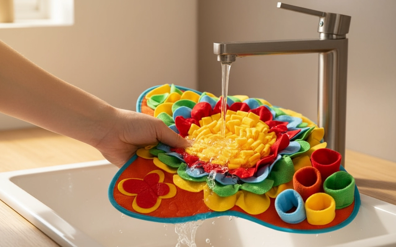 Das Waschen ist einfach und die Matte trocknet wirklich schnell. Mein Hund kann es kaum erwarten, sie bei jeder Mahlzeit zu benutzen!
