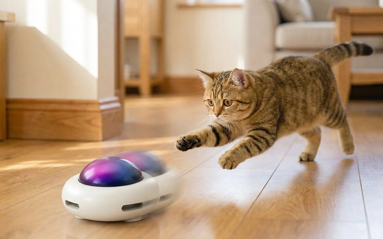 Der Primdog Interaktive UFO Katzenteaser bringt endlosen Spaß. Langeweile verschwindet, wenn lebendige Bewegung neugierige Pfoten unterhält. Lebhafte Farben begleiten jede Spielrunde und sorgen für gute Laune. Sehen Sie zu, wie Ihr Haustier jagt, springt und täglich gesund bleibt.