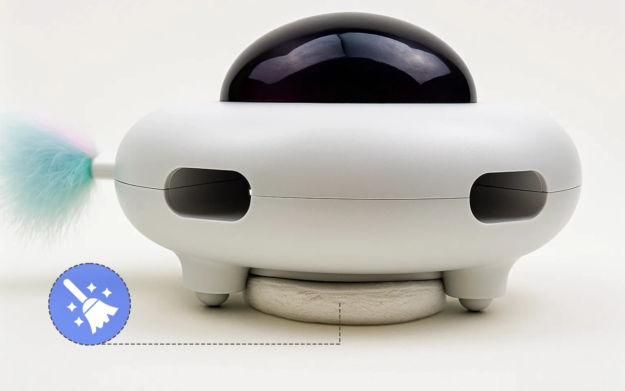 Integrierter Filz sammelt lose Haare, während er herumrollt. Die Böden bleiben sauberer, während Haustiere Energie verbrennen, indem sie Federn jagen.