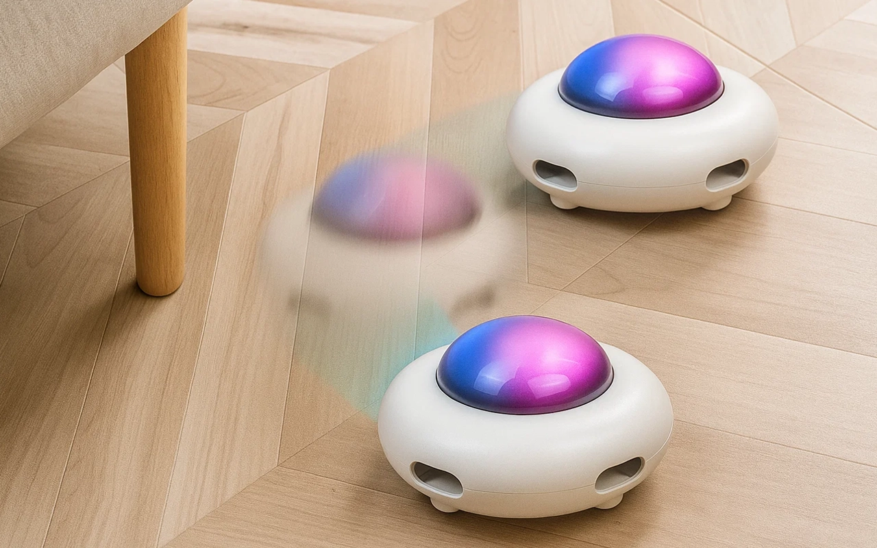 Automatische Steuerung verhindert, dass sich der Teaser irgendwo festfährt. Sanfte Bewegung passt sich jeder Oberfläche an und ermöglicht stressfreies Spielen.