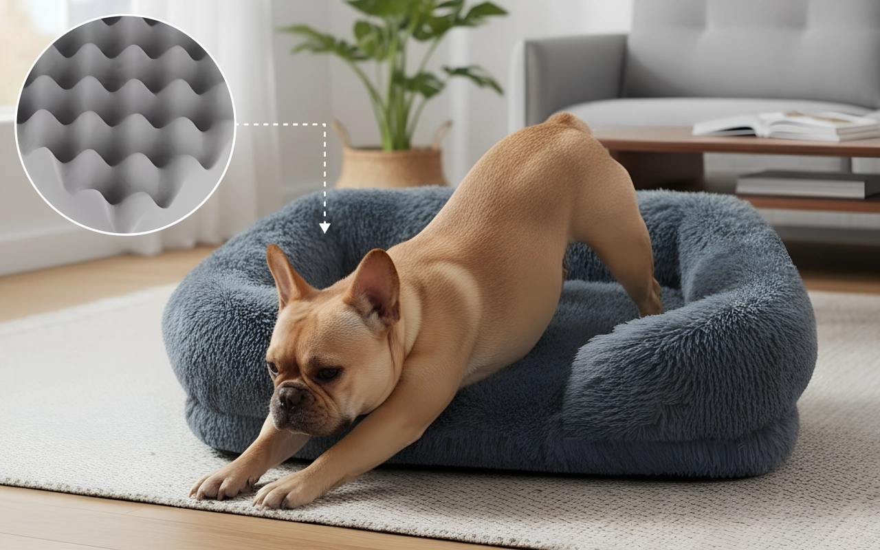 Der Schaum ist sanft zu den Gelenken meines Hundes, besonders nach Spaziergängen. Sie ist ein nervöser Hund, aber die Seiten scheinen sie abends richtig zu beruhigen.