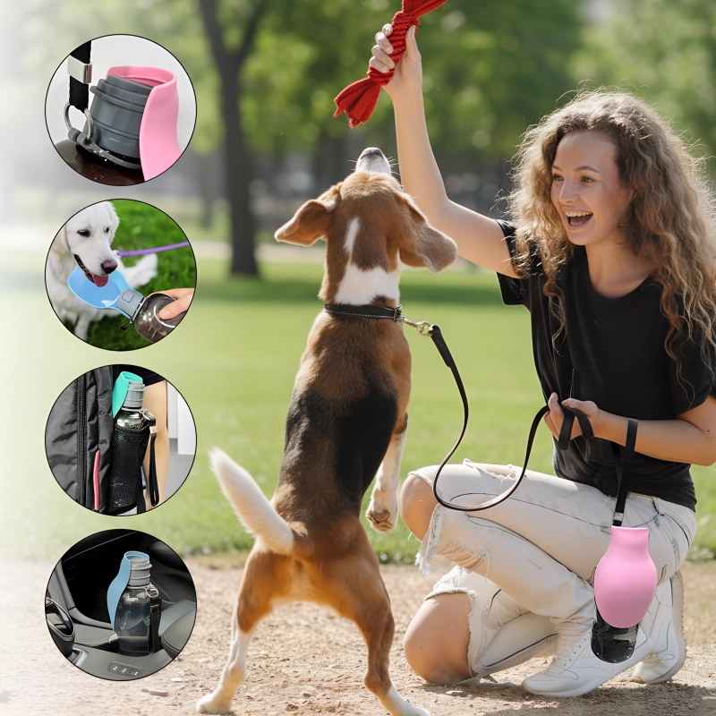 Leichtes Design und stabiler Riemen passen schnell an Taschen oder Gürtel. Hunde und Welpen bleiben überall auf Abenteuern hydratisiert.