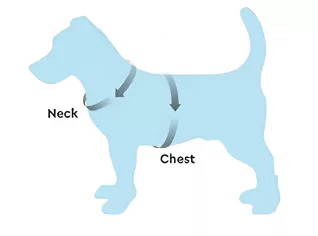 - 1. Legen Sie das Maßband vom Halsansatz, wo das Halsband sitzt, bis zum Ansatz der Rute an.