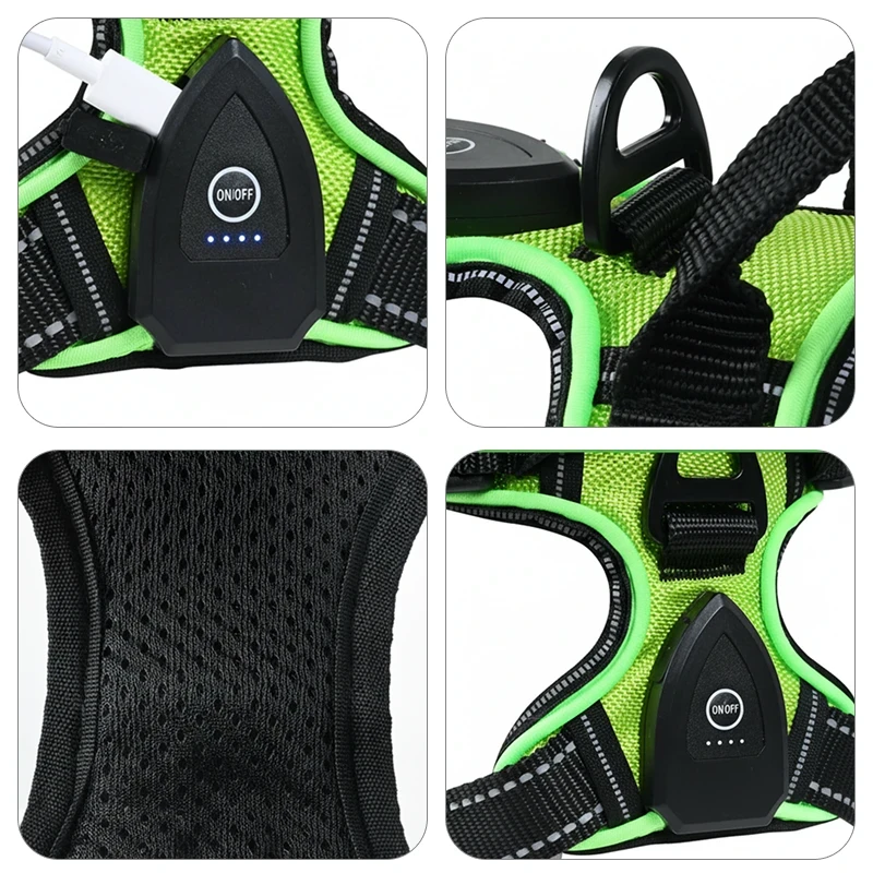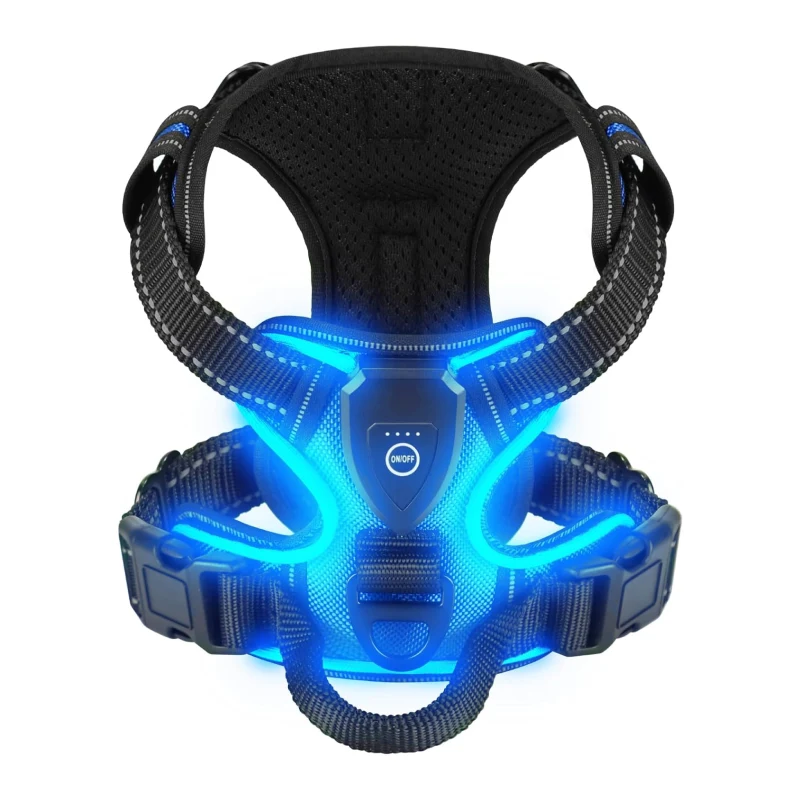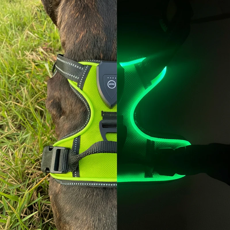 Unsere Spaziergänge sind seit Verwendung dieses Geschirrs viel einfacher. Die Lichter helfen den Autos, uns sofort zu sehen, und mein Hund bleibt kühl und bequem.