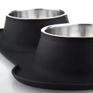 Ich bin wirklich zufrieden mit diesem Doppelnapf. Die Gummimatte verhindert, dass die Näpfe meines großen Hundes herumrutschen, selbst wenn er hungrig ist.