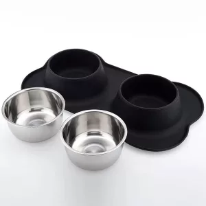 Rutschfester Doppel-Hundenapf mit Silikonmatte