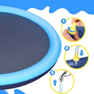 Sie haben dieses Spritzpad in wenigen Minuten einsatzbereit. Es muss einfach an einen Wasserschlauch angeschlossen werden.