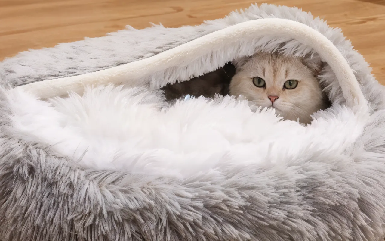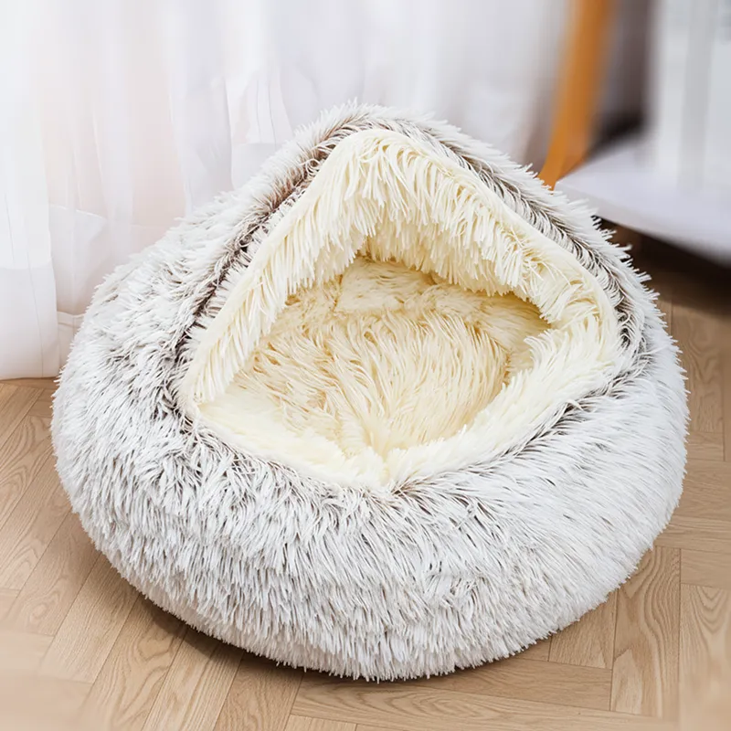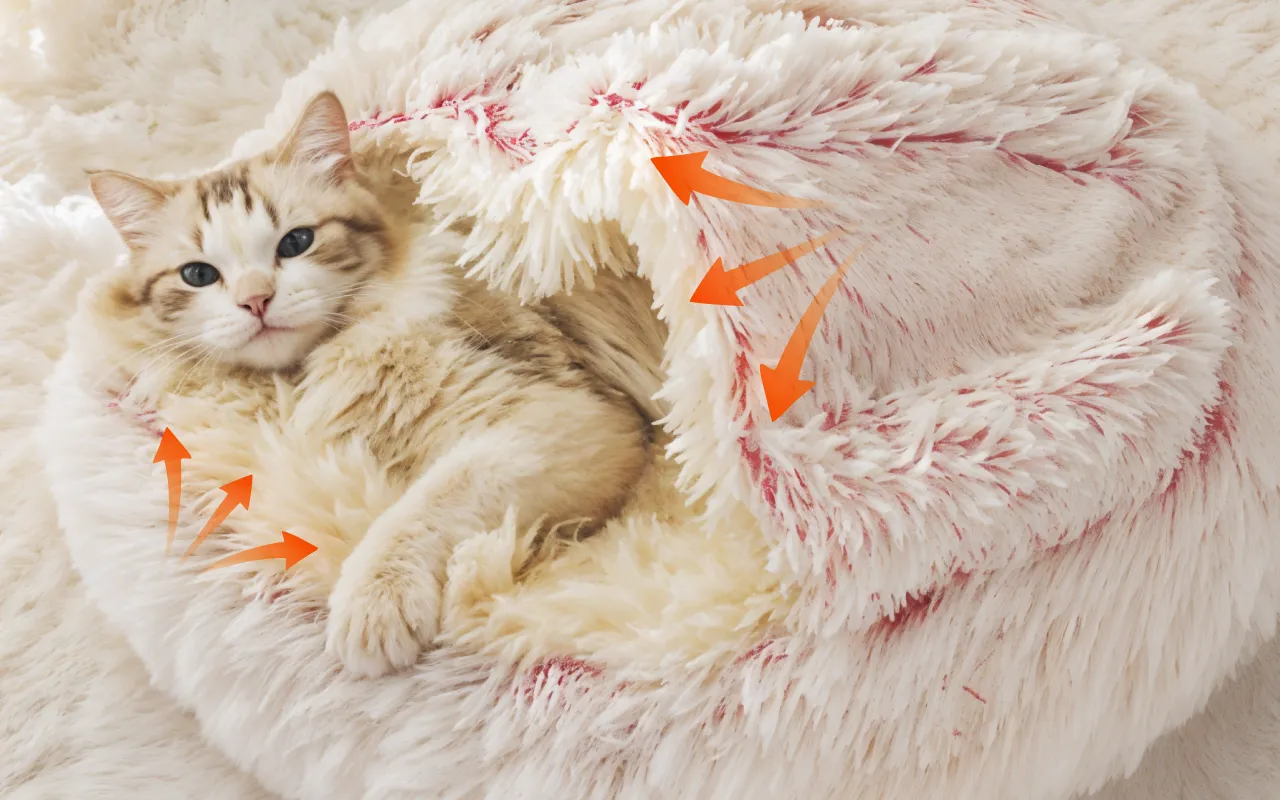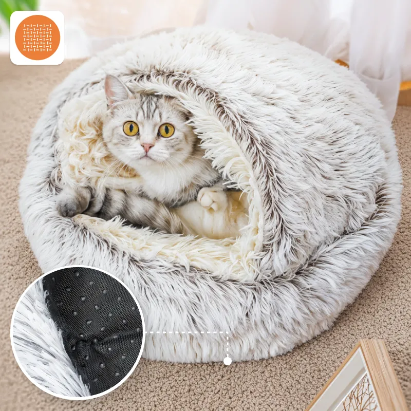 Rundes Plüsch-Katzenbett mit Wärme und Höhlenfunktion