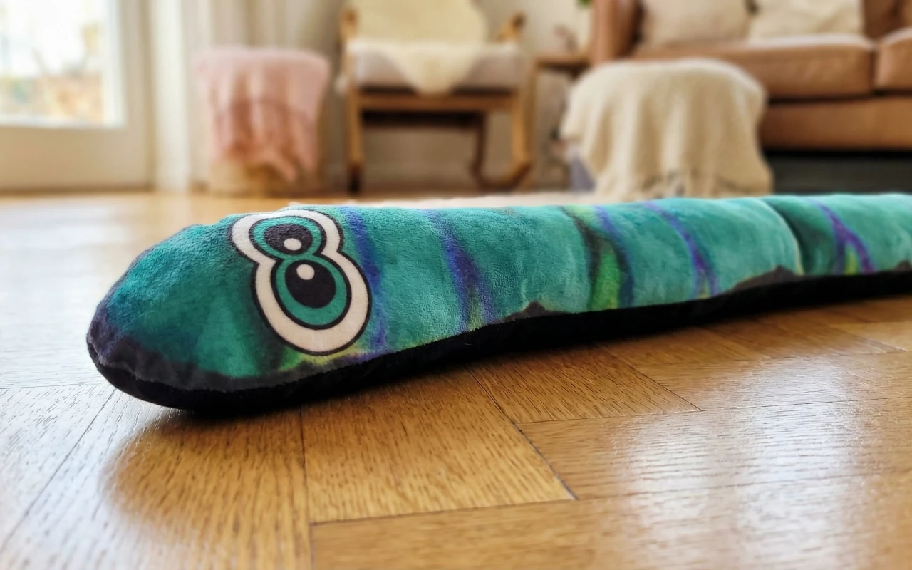 Diese Plüschschlange hat unserem Welpen so viel Freude bereitet! Sie rennt damit herum und kuschelt die ganze Nacht damit. Bringt definitiv ihren Schwanz zum Wedeln.