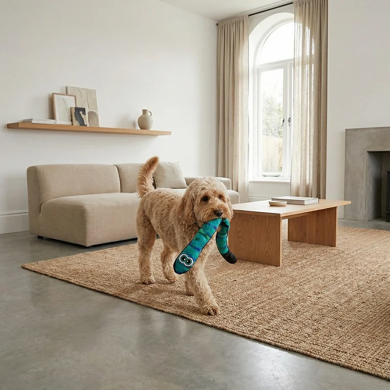 Mein Hund wird dieser Schlange nie müde! Sie trägt sie überall hin und der Quietscher bringt Leben ins Haus. Eine tolle Ergänzung zu ihrer Spielzeugsammlung.
