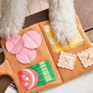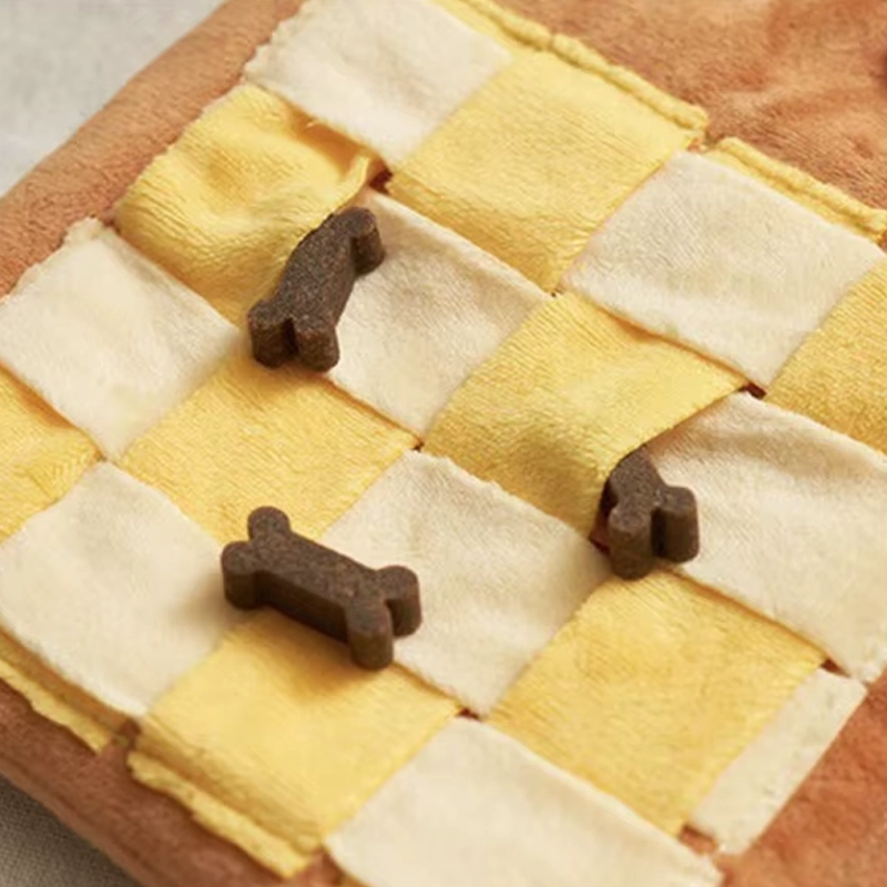 Unser Beagle hat riesigen Spaß daran, sein Futter in den flauschigen Stoffstreifen zu finden. Er schlingt das Essen nicht mehr, was seinem Bauch hilft. Absolut empfehlenswert!