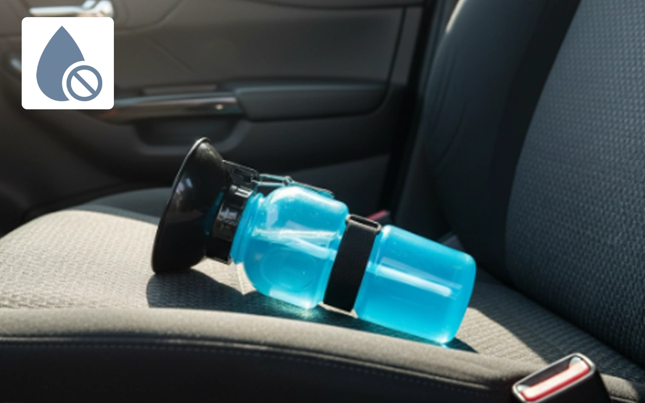 Auslaufendes Wasser wird durch den sicheren Verschlussmechanismus verhindert. Ihre Tasche und das Autoinnere bleiben beim gemeinsamen Reisen trocken.