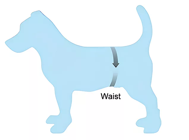 • 1. Wickeln Sie das Maßband um den schmalsten Teil des Körpers Ihres Hundes vor den Hinterbeinen.