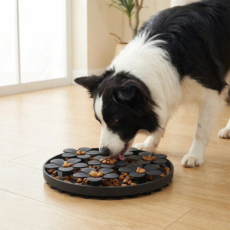 Unser Welpe hat früher bei jeder Mahlzeit seinen Napf umgekippt, aber diese Matte haftet wie Kleber! Er verbringt mehr Zeit mit Kauen, was weniger Schlingen und einen ruhigeren Magen bedeutet. Ich liebe es, wie bunt und fröhlich sie aussieht.