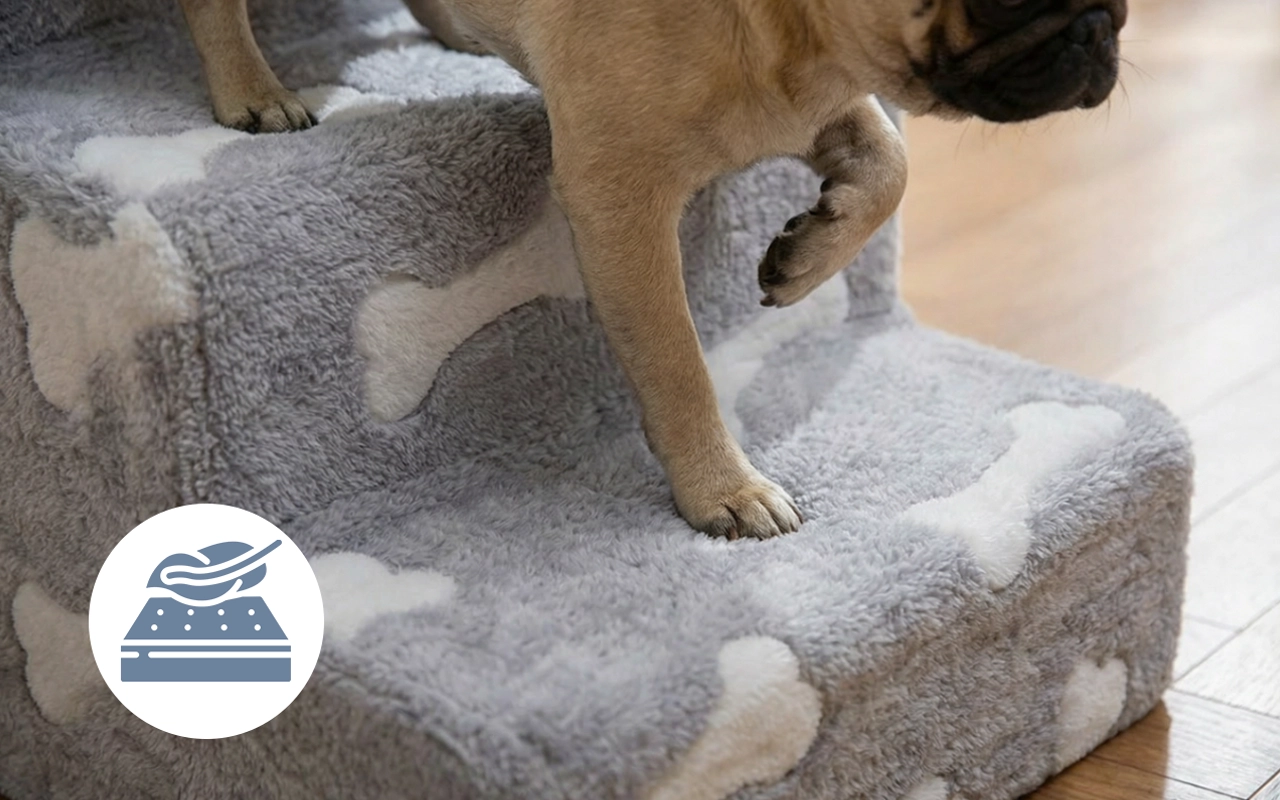 Ältere Tiere oder Haustiere mit schmerzenden Gelenken kämpfen täglich. Primdog Soft Steps helfen ihnen, sicher aufs Sofa oder Bett zu kommen. Für Komfort konzipiert, schützt diese sanfte Lösung die Beweglichkeit. Entscheiden Sie sich für ein einfacheres, sichereres Leben für Ihren lieben Begleiter.
