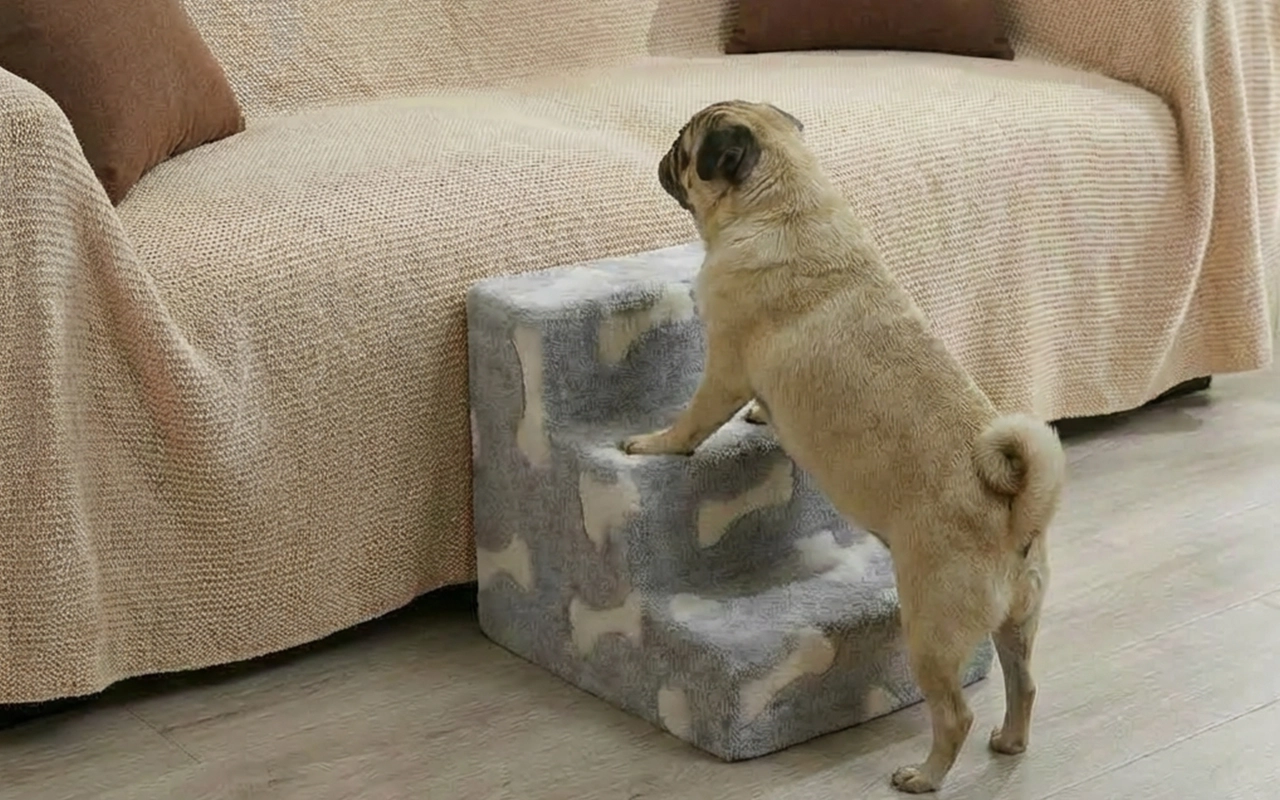 Mein Mops kann endlich ohne meine Hilfe aufs Bett kommen. Die Stufen fühlen sich weich und stabil an, sodass ich weiß, dass er jedes Mal sicher ist.